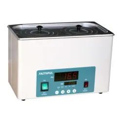 The DK2000 Series Digital Laboratory Baths offer precise temperature control with a range from RT+5 to 100ºC. Delivering 0.1ºC resolution, ±0.5ºC stability, and ±1ºC uniformity, these baths are ideal for varied laboratory procedures. Equipped with a timer capable of 0 to 999 minutes, they provide clear digital displays for time, temperature, and alarms. Constructed from durable stainless steel, these baths include a perforated lid, accommodating bottles up to 120 mm in diameter. Available models include: 1 row, 2 holes with a 6.6 L capacity; 2-row, 4 holes, 12.7 L; and 2 rows, 6 holes, 18.7 L. Pricing shown for the 1 row, 2 holes, 6.6 L model. For details on other models, please consult the drop-down menu.