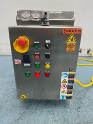 The Mokon DT4309AHY01 Temperature Control Unit is a precision industrial-grade thermal management system designed to ensure accurate temperature regulation for various laboratory and bioprocessing applications. Operating at 460 Volts, this temperature controller integrates a robust control panel with essential features such as an emergency stop, pressure gauges, and multiple user-friendly control buttons, enabling precise monitoring and adjustment of thermal parameters critical in molecular diagnostics, biomanufacturing, and synthetic biology workflows.