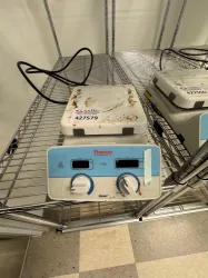 The Thermo Scientific Cimarec SP88857100 Hotplate Stirrer is engineered for accurate temperature control and stirring speed adjustment, featuring dual control knobs for independent management of heating and magnetic stirring. Its design integrates a white ceramic top plate optimal for uniform heat distribution and chemical resistance, paired with an intuitive blue control panel. This device supports critical laboratory protocols including molecular diagnostics, cell culture preparation, and bioprocessing applications, widely used in biotechnology research and synthetic biology experiments.