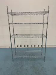 This 4-foot stationary wire shelving unit provides robust and organized storage solutions for laboratory environments. Constructed with corrosion-resistant stainless steel or wire materials, it supports efficient equipment management essential in biotechnology, molecular diagnostics, and clinical research labs. Its stationary design ensures stability for safely storing sensitive instruments and reagents. Widely used for bioprocessing workflows and synthetic biology research facilities, the shelving unit facilitates optimized lab layout and inventory control critical in biomanufacturing and biomedical engineering. The open wire design promotes ventilation, reducing contamination risk and maintaining sample integrity throughout daily laboratory operations.