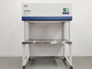 Esco Laminar Ductless Flow Cabinet Clean Bench Model AHC-4D1-1 Lab is a high-quality unit previously used in a university setting where it became surplus to requirements. The cabinet is in excellent cosmetic condition, with minimal signs of prior use, and is fully operational. According to the previous owner, the unit has had limited work time and is functioning normally. The last service was conducted on 18-04-2024. Noteworthy specifications include a usable work area of 0.59 m², an air volume of 815 cm³/h, and a work height of 77 cm from the floor. Additionally, this unit is prewired for a UV lamp (not included) and mounted on a robust trolley with four castors, two of which lock for stability. It features two pre-filters installed in the roof panel, with order code CR/PF-2 available for a pack of six filters.