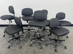 This set of seven ergonomic laboratory stools is designed to enhance comfort and mobility in clinical diagnostics, biotechnology labs, and research facilities. Key features include: