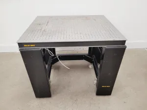 The Melles Griot Optical Table Isolator, Model 070WSS01, is an advanced solution tailored for precision applications, offering excellent vibration isolation capabilities ideal for laboratory settings. Previously utilized in a university research environment, it remains in excellent cosmetic and structural condition, ensuring unwavering reliability during experiments. This isolator is designed with mobility in mind, featuring a sturdy frame equipped with wheels for effortless relocation, coupled with practical dimensions: overall size L90 x W75 x H74.2 cm, a tabletop measuring 90 x 75 x 6 cm, and a floor-to-tabletop height of 74 cm. The compact frame (L89 x W74 x H67.5 cm) supports an imperial measurement system, facilitating ease of integration with various equipment and setups.