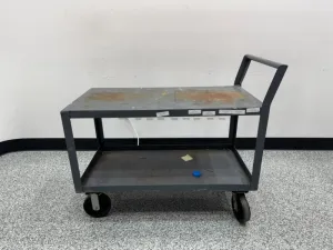 This heavy-duty metal laboratory utility cart features a two-tier open shelving system constructed from solid metal, providing robust storage and transport capacity for heavy equipment, instruments, and supplies. Designed for laboratory, industrial, and workshop environments, the cart enhances workflow efficiency by organizing tools and containers in bioprocessing and molecular diagnostics settings. Equipped with four swivel casters, it ensures smooth and stable mobility on a variety of floor surfaces, essential for biomanufacturing and biomedical engineering facilities. The ergonomic push handle improves maneuverability, supporting safe transport of critical instruments in biotechnology and clinical diagnostics workflows. This versatile metal cart is widely used for maintaining equipment accessibility and operational productivity in research laboratories and synthetic biology production pipelines.