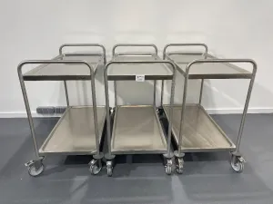 This set includes three stainless steel laboratory utility trolleys, each equipped with: