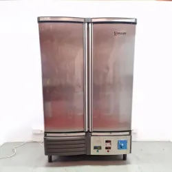 ING Climas RAF 9000C laboratory refrigerator. Temperature range from +2 ºC to +14 ºC. Capacity 890 L. Forced air recirculation. Homogeneity in the chamber ± 1.5 ºC. Pt 1000 temperature probe with a precision of 0.1 ºC. Continuous paper temperature recorder. Alarm: acoustic and visual for maximum and minimum temperature as well as voltage failure. Blind door, with a large handle. Dimensions: external 12457501950mm; internal 11205801280 mm.