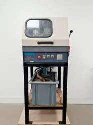 The MC-80 Water Cooling Manual Metallographic Cutting Machine with Stand is a reliable piece of laboratory equipment, previously utilized in a university setting and retired due to surplus. It remains in good operational condition, reflecting standard cosmetic wear expected from active use. This machine is equipped with a 16amp 5 pin 3-phase plug, ensuring robust power support for cutting applications.