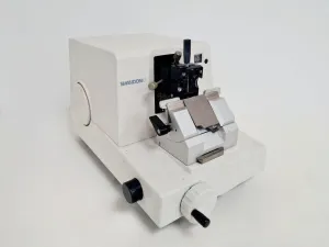 The Shandon AS325 Rotary Microtome is a precision instrument ideal for producing consistently thin tissue sections. Previously utilized in a university lab, this microtome was part of surplus equipment. The unit is in full working order, equipped with an internal battery, and demonstrates excellent mechanical integrity. Cosmetically, it is in good condition with minor surface marks, making it a dependable choice for histology laboratories.
