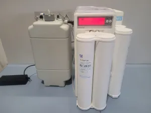 The Millipore AFS Essential 16D Water Purification System (ZAFS16DWW) offers a reliable solution for laboratory water needs with a maximum usage capacity of 320 liters per day. It dispenses water at 0.6 liters per minute when operated in atmospheric conditions, without flow restrictions by any connected analyzers. Operating at a weight of 22.2 kg (49 lb), the system supports a versatile power input range of 100-230 volts, with a frequency of 50-60 Hz. The system provides a 16 liters per hour top-up flow rate and includes a 5-liter polyethylene storage tank. Note that regular maintenance is necessary, including the replacement of resins and filters, and it is shipped without connectors. With its manufacture dating back to 2013, the AFS Essential 16D remains a robust option for high-demand environments.