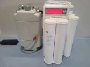 Equipped with a 5-liter polyethylene storage tank, this system guarantees a stable supply. The versatile unit is compatible with voltage settings of 100-230V / 50-60 Hz, supporting global use. Maintenance involves regular replacement of resins and filters, and it is supplied without connectors. This model, manufactured in 2016, remains a crucial choice for laboratories requiring precise and efficient water purification.