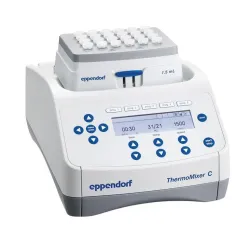Eppendorf Thermomixer C Model 5382 w/ 1.5ml Block & ThermoTop SpecificationsSpeed Range300 to 2,000 RPMSpeed Increments± 50 RPMTemperature RangeAmbient -15°C to 100°CTemperature Uniformity± 0.5°C at from 20°C to 45°CTemperature Accuracy± 0.5°C from 20°C to 45°C, ± 1°C outside previous rangeTemperature Increments± 1.0°CHeating/Cooling RateHeating: 6°C/minuteCooling: 2.5°C/minute from Ambient to 100°C, 0.5°C/min to 0.8°C/min outside previous rangeOrbit3 mmTimer5 seconds to 99 hours and 30 seconds, or continuousInterfacesUSBDimensions (W x D x H)8.1 x 12 x 5.4 in. (20.6 x 30.4 x 13.6 cm)Weight13.9 lb. (6.3 kg)Electrical Requirements100-130V, 50/60HzDownloadsTechnical Specification Download Operator's Manual Download