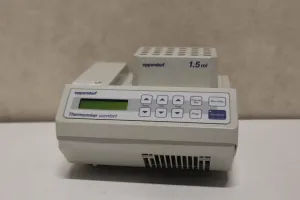 The Eppendorf Thermomixer Comfort provides simultaneous mixing and precise temperature control, ideal for a range of laboratory applications such as enzyme reactions, DNA and RNA denaturation, transformation processes, microbial culture, bead technology, and immunoprecipitation. It features two customizable program sequences with phases for incubation, mixing, resting, and automatic cooling to 13°C below ambient temperature. The device intelligently recognizes the thermoblock, displaying maximum revolutionary speeds.