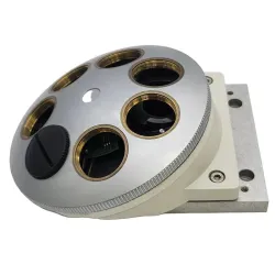 The Leica DMRBE Coded Nosepiece is a 7-position turret designed for precise and repeatable objective switching in advanced microscopy systems. This coded nosepiece fits M25 threaded objectives and ensures reliable rotation with tactile click stops for accurate positioning. Supplied with four mounting screws, it is compatible with a range of Leica and other M25 thread microscopes commonly used in cell imaging, biomedical research, and biotechnological applications such as molecular diagnostics and synthetic biology workflows. The coded turret functionality facilitates integration with automated microscopy platforms, providing essential compatibility for live-cell imaging and fluorescence analysis in research environments requiring high reproducibility and efficiency.