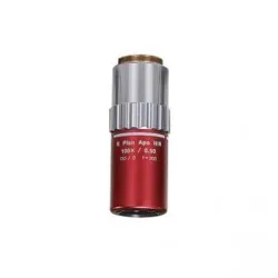 This objective lens supports laser applications and provides long working distance between the lens and the sample surface.