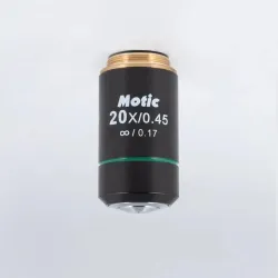 The Motic CCIS® Plan achromatic objective EC PL 20X/0.45 lens is engineered for precision microscopy applications in biotechnology, molecular diagnostics, and biomedical engineering. Featuring a 20X magnification with a numerical aperture (N.A.) of 0.45, this infinity-corrected objective delivers high-resolution, flat-field imaging essential for cell imaging and fluorescence analysis.