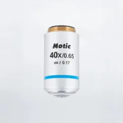 The MOTIC CCIS Plan achromatic objective UC 40X/0.65/S is a precision infinity-corrected optical lens designed for advanced biological microscopy applications, including biotechnology and molecular diagnostics. It features a 40X magnification and a high numerical aperture (N.A.) of 0.65, enabling enhanced resolution and contrast essential for cellular imaging and live-cell analysis in synthetic biology and bioprocessing workflows.
