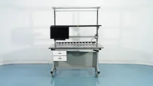 • Constructed with stainless steel (implied by typical portable lab tables) for durability and chemical resistance