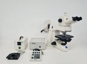 The Zeiss Axioskop 40 FL is an advanced microscopy system equipped with three high-performance objectives and a QImaging camera, designed for rigorous analytical and imaging applications in the laboratory. This unit was part of a university laboratory's surplus equipment and remains in excellent mechanical condition, showing minimal cosmetic wear. The system includes the following components:
