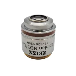 The Zeiss EC Epiplan Neofluar 2.5x microscope objective (Part No. 422320-9900) features a 2.5x magnification and 0.06 numerical aperture (NA), designed for use with infinity-corrected optical systems (∞/0). Equipped with a standard M27 thread diameter for compatibility with various Zeiss fluorescence and brightfield microscopes, this objective lens delivers high-quality imaging performance critical for detailed sample analysis in biomedical engineering, molecular diagnostics, and biotechnology applications.