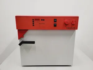 The Binder BFED 53 Hybridisation Oven and Rotisserie Shaker is a versatile laboratory device, ideal for various experimental needs. This equipment was sourced from a university laboratory where it was in surplus. It is in good cosmetic and functional condition. Featuring a speed-adjustable shaking platform and a rotisserie bottle holder accommodating 12 bottles, it retains full operational capabilities. The glass inner door is intact, and essential mechanical functions are effectively working. With a maximum temperature of 100°C, the unit is in excellent working order, though the thermometer is not included.