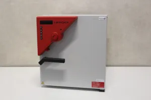 The Binder FD 23 Lab Oven offers a precise temperature range from ambient +5°C to 300°C. Its temperature uniformity at 150°C is ± 2.5 K, with fluctuations as low as ± 0.3 K, ensuring consistent results. The oven heats up to 150°C in just 25 minutes, and quickly recovers in 6 minutes after a door opening of 30 seconds. It has an air change rate at 150°C of 64 times per hour. Each rack can support a load of 12 kg, with a total oven capacity of 25 kg and an internal volume of 20 liters. The internal dimensions measure 222 x 330 x 300 mm, while the overall dimensions are 435 x 495 x 520 mm, and it weighs 27 kg.