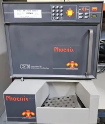 The CEM Phoenix 905410 Microwave Cremation Oven is a highly efficient, pre-owned laboratory instrument designed for precise thermal processing. Capable of reaching temperatures up to 1200°C, this model ensures rapid heating and accommodates a substantial capacity for diverse sample sizes. The unit is supplied as pictured, reflecting its current, well-maintained condition.