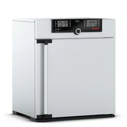 The Memmert UF110plus Forced Circulation Oven 108L, 115V offers a highly advanced and spacious solution for laboratory heating needs, with a working temperature range from 10°C above ambient up to +300°C. Its TwinDISPLAY system includes a multifunctional digital PID-microprocessor controller with dual high-definition TFT-color displays, ensuring precise and intuitive control over various parameters. With a 108L (3.8 cu.ft.) capacity, this oven provides ample space for a range of applications, while the stainless steel interior with deep-drawn ribbing ensures uniform heat distribution and easy cleaning.