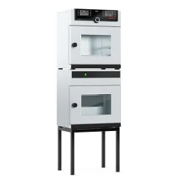 The Memmert VO29 Vacuum Oven 29L, 230V stands as a pinnacle of efficiency and precision in the field of vacuum drying. Designed for diverse applications such as drying food, cosmetics, electronic components, and more, this oven guarantees rapid and uniform temperature control through its direct contact between the load and heatable, removable thermoshelves, ensuring no heat loss. This model features digital pressure control that facilitates rapid yet gentle drying, optimizing the process for delicate materials. The VO29 is engineered with a multi-level heating and sensing system, which includes individually placeable thermoshelves equipped with separate sensors for accurate temperature control and short process times. This system reacts dynamically to different loads or humidity levels, maintaining a constant set temperature crucial for effective vacuum drying. Additionally, each thermoshelf can be individually calibrated to meet specific testing requirements.
