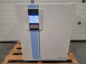 The Thermo Scientific HERACELL 150i GP CO2 Incubator/Oven is available in excellent condition, having been used for only six months. This 2021 model, referenced as 51032719, is designed with advanced features including forced convection for uniform temperature distribution and a patented humidification system without the need for a water tray, allowing for rapid return to set points. The incubator has a volume of 151 liters with a stainless steel chamber, and its iCAN touch screen interface simplifies operation.