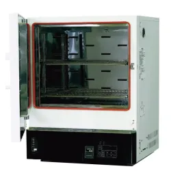 High-performance, energy-saving, programmable 150L constant temperature oven with two types of circulation (forced and natural convection) in one unit. Program featured to reduce power consumption significantly. Superior heat tightness and insulation of chamber. Excellent dust tightness, dust can hardly enter the chamber. Air velocity changeable in 10 stages using digital setting of controller. Standard with 99 step program operation with repeat operation, auto start, auto stop and quick auto stop functions. Adjustable damper position at chamber front to optimize operation. Fluorescent display, interactive input method, calibration off-set function. Operating temp ambient +15~260°C.