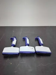 The Rainin Multi-Channel Pipette Set includes three manually operated, ergonomic liquid handling devices optimized for high-throughput pipetting applications in biotechnology, molecular biology, and clinical diagnostics laboratories. Each pipette supports precise volume adjustment with clear volume markings covering essential volumes of 20 µL and 200 µL, making them suitable for molecular cloning workflows and fluorescence analysis experiments.