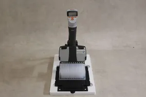 The Finnpipette Novus series by Thermo Scientific is renowned for delivering exceptional performance and ease while minimizing injury risks. The distinctive index-finger trigger design of Novus pipetters alleviates common repetitive stress injuries often associated with thumb-driven pipetting. Users are guided through 10 pipetting functions with straightforward prompts, ensuring precise operations. Configured as a 12-channel pipette, it offers a range of 20 to 300 µl with 1 µl increments, and boasts impressive accuracy between ±5.0% and ±1.0%, alongside precision ranging from 2.0% to 0.3%. Each unit includes a convenient stand for improved laboratory organization.