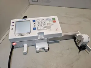 Introducing the Solomon Scientific Model 100 Syringe Infusion Pump, a reliable and efficient solution designed for precise fluid delivery in various laboratory and clinical settings. This pre-owned syringe pump features a backup battery, ensuring continued operation during power interruptions, and a user-friendly interface with functional buttons. While this unit powers on and allows navigation through its menu options, it has not been subjected to comprehensive testing. Researchers and professionals seeking an adaptable infusion pump will find the Model 100 to be a versatile asset for their experimental or clinical needs.