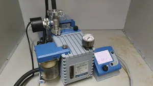 This pre-owned Vacuubrand RC6 Chemical Hybrid Vacuum Pump is engineered to provide exceptional performance and reliability. This system integrates a double-stage rotary vane pump with a double-stage diaphragm pump, making it an excellent choice for applications such as freeze drying.