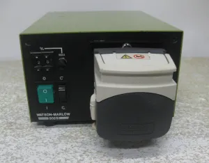 A Watson-Marlow peristaltic pump, type 502S with a 313D pump head, suitable for hoses with wall thickness of 1.6 mm. Pumping capacity up to 3 L/min. Dimensions (WxHxD): 185 x 125 x 320 mm.