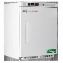The American Biotech Supply Premier undercounter freezer model ABT-HC-UCBI-0420-ADA offers precise temperature control through a microprocessor temperature controller with digital display. It supports adjustable operating temperatures ranging from -15°C to -25°C. The unit is designed for built-in installation with a front-breathing ventilation system, eliminating the need for side and top clearance.