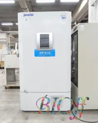 The PHCbi MDF-DU702VH Ultra-Low Temperature Freezer features a spacious 729-liter capacity designed for advanced biomedical, clinical diagnostics, and bioprocessing applications requiring reliable ultra-low temperature storage. This laboratory freezer operates with a dual refrigeration circuit using non-fluorocarbon hydrocarbon refrigerants (HC), providing natural convection cooling down to -85°C with precise microcontroller temperature regulation and an LCD touchscreen display.