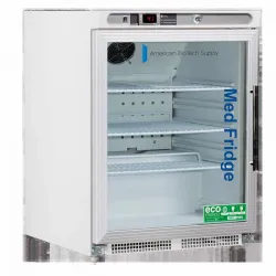 The American BioTech Supply PH-ABT-HC-UCBI-0404G-ADA-LH is a 4.6 cubic foot built-in pharmacy undercounter refrigerator designed for precise vaccine storage under ADA compliance.