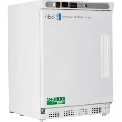 The American BioTech Supply Premier Built-In Undercounter Refrigerator (4.6 cu. ft) model ABT-HC-UCBI-0404-ADA-LH offers precise temperature control via a microprocessor controller and digital display, suitable for laboratory and medical refrigeration where space efficiency and compliance are critical.