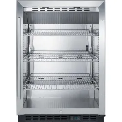 The Accucold SCR610BL is a 5.0 cu.ft. commercial beverage cooler designed for reliable refrigeration in commercial and laboratory settings. Featuring a stainless steel interior for superior sanitation and durability, this Energy Star certified unit ensures efficient, environmentally friendly operation using R600a refrigerant. It includes a double pane tempered glass door with stainless steel trim, offering full product visibility and professional aesthetics.