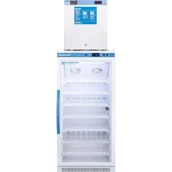 The Accucold ARG8PV-FS24LSTACKMED2 is a purpose-built pharmacy refrigerator-freezer combo designed to support critical vaccine and medication storage needs aligned with CDC/VFC guidelines. This compact unit combines an 8.0 cu.ft. glass door refrigerator and a 1.4 cu.ft. solid door freezer in a slim 24" wide footprint — ideal for laboratory, clinical diagnostics, and biopharmaceutical storage environments.