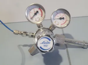 The LINDE REDLINE C300 HIQ is a high-quality gas regulator designed for precise control of gases at pressures up to 300 bar (4350 psi). Engineered for laboratory and industrial gas delivery systems, this high-pressure regulator ensures stable output pressure, essential for applications in bioprocessing, molecular diagnostics, and biotechnology research. The regulator is compatible with various specialty gases used in synthetic biology and molecular cloning workflows, where consistent flow and pressure are critical. Crafted for durability and reliable operation, it supports safe and efficient gas handling in clinical diagnostics and biomanufacturing pipelines. Its design caters to researchers and technicians requiring rigorous pressure control in live-cell imaging setups and fluorescence analysis that depend on stable gas environments. This LINDE REDLINE model is widely adopted for its precision and robustness in managing high-pressure gas delivery systems critical for advanced scientific research and industrial applications.