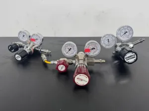This set of three laboratory gas pressure regulators provides precise control of gas flow essential for biotechnology and molecular diagnostics workflows. Each regulator features: