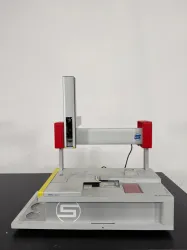 The RheoSense VROC Initium One Plus (model INI-H-1100) is an automated liquid handling instrument featuring a precision mechanical arm designed for accurate and reproducible sample manipulation. This robotic liquid handling system integrates seamlessly into laboratory workflows requiring automated pipetting and fluid transfer.