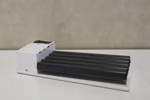 The CAT RM 5 Roller Mixer features five synchronized rotating PVC rollers, providing a uniform swaying surface ideal for the gentle and homogeneous mixing of cylindrical vessels, such as those containing blood or other cell suspensions. Operating at a speed of 38 rpm, with rollers that are 330 mm in length, this mixer is designed for precision. It supports a tilt angle of 3° and a maximum load capacity of 5 kg. Compact and lightweight, the mixer measures 180 x 110 x 480 mm and weighs 3.7 kg, making it a convenient addition to any laboratory.