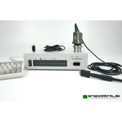 The Optronics DEI-750 Camera Controller combined with the S97670 CCD Camera offers an exceptional imaging solution tailored for laboratory microscope applications. Featuring a 3 x 1/2" CCD sensor and an innovative microprocessor-controlled continuous ratchet auto-exposure algorithm, it promises superior image quality and performance. The system supports both PAL and NTSC formats with independent video outputs and integrates seamlessly with C-mount microscopes. This all-inclusive package consists of the DEI-750 Camera Controller, an S97670 CCD camera, a dedicated control keyboard, a 1.0X C-Mount adapter from Diagnostic Instruments, and necessary cables and manuals. Designed to operate efficiently in a range of conditions, it is easy to install and maintain. Note: Microscope and monitor are not included in this offer. The equipment is fully functional, and the optics remain in pristine condition as demonstrated with a Nikon E600 Microscope.
