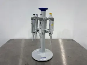 Each pipette delivers ergonomic operation combined with superior accuracy and precision, essential for high-throughput biotechnology research and synthetic biology protocols. The included dedicated stand, with a base diameter of approximately 6.5 inches and a height of around 10 inches, provides organized storage that helps maintain instrument integrity and laboratory efficiency.