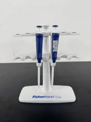 The Fisherbrand Elite Single Channel Adjustable Volume Pipettes set includes two highly precise pipettes paired with a convenient stand for organized storage. These pipettes feature an ergonomic design to reduce user fatigue and provide reliable, repeatable performance across a range of adjustable volumes. Ideal for applications requiring accurate liquid handling, such as molecular diagnostics, biotechnology workflows, and clinical diagnostics. The pipettes support essential techniques in bioprocessing and synthetic biology, making them widely adopted in molecular biology research and biopharmaceutical production pipelines. The included stand ensures safe, accessible placement, enhancing laboratory efficiency and organization during live-cell imaging and fluorescence analysis workflows.