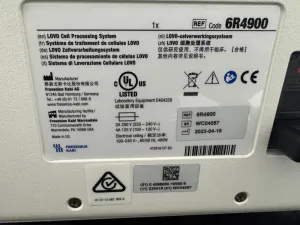 The Fresenius Kabi LOVO Cell Processing System is a compact, automated device engineered for efficient cell processing and bioprocessing applications such as molecular diagnostics and cell therapy manufacturing. Equipped with a user-friendly touchscreen interface, the system features three integrated fluidic ports with color-coded connectors (blue, purple, red) to streamline fluid management workflows. Operating at a voltage range of 100–240 V and frequency of 50/60 Hz, it supports versatile laboratory environments.