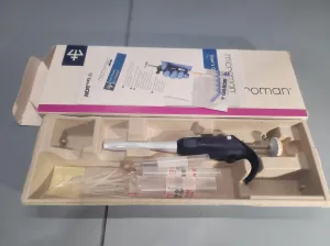 The Gilson Microman E M100E pipette is a versatile tool designed to handle variable volumes ranging from 10 to 100 microliters. Although not currently calibrated, it comes in its original packaging, maintaining its pristine condition. This positive displacement pipette ensures precision and accuracy in your liquid handling tasks, making it indispensable for any laboratory aiming for reliable results.